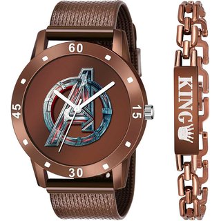 Know MoreMen Brown Avenger And King Bracelet Combo Watch