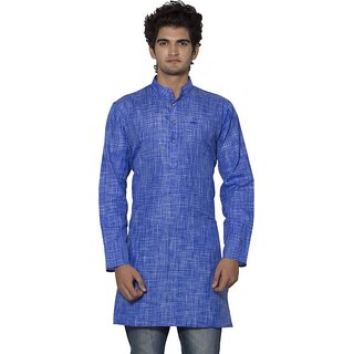 Specifications Ideal For Men's Length Type Mid Pattern Self Design Type A-line Fabric Polyster Blind Neck Ban Cllar Sleeve Full Sleeve Style Code nauhwar long blue kurta