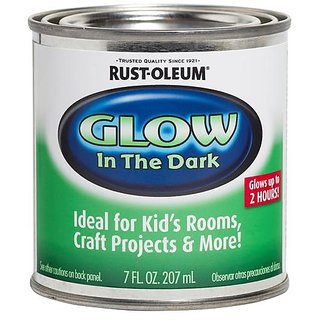 Know MoreRust-Oleum Glow in the Dark paint is designed to make any surface glow in the dark. This product can be applied to wood, metal, drywall, and many other surfaces. It is ideal for use on walls, doors, drawer fronts, storage containers, light switches, toy chests, closets, and other surfaces. Use is bedrooms, play areas, basements, garages, laundry rooms, and dorm rooms. Glows for 2 hours after a full charge. IMPORTANT! Use over a white or light colored surface.
