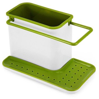 Why do you choose this Under-Sink Organizer? -Organised storage for dishwashing items -Rubber dish-brush grip -Sponge draining compartment -Dishcloth hanging rail -Four suction cups and a sink support for secure fixing -Height adjustable for most sinks -Drains directly into sink Features: -Material: ABS + PVC -Color: White and Green -Item Dimensions: 19.5cm * 9cm * 9.5cm -Item Weight: 188g Care and Use: Ensure surface of sink is free from grease and dirt before attaching Unit dismantles for easy cleaning