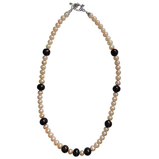 | Description: | This charming necklace is made with quality Black and orange freshwater pearls . The strand is secured with a silver tone base metal round ring "T" clasp. |