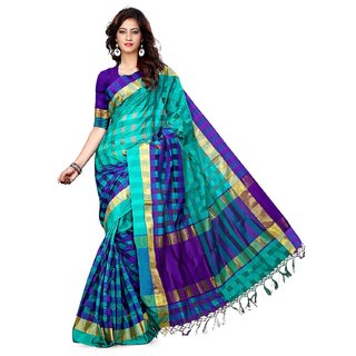 Know MoreWeaved Checks Material: Cotton Blend Weaved Zari Stripe over Border Occasion: Formal; Party; Festive Attached BlousePiece: Same Material and Colour - Solid Striped