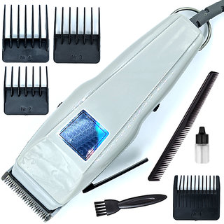 Know MorePowerful corded 9W hair clipper and trimmer with 4 length settings in one pack. A complete grooming kit which can trim your hair and beard from 0.8mm, 3mm, 6mm, 9mm & 12mm. Corded ultra trim grooming kit gives you the power of precision with complete versatility for all of your grooming needs. With this trimmer in hand, you don’t have to worry about looking shabby. It’s designed to take care of your beard and shape it effortlessly. The Ultra Trim Bread Trimmer comes with 4 guide comb (3mm, 6mm, 19mm, 12mm) to give you the flexibility of different lengths and precise trimming. Corde, can be used as much time you want. Simple plug and play. Washable and removable, the cutting head can be simply changed and cleaned up under the faucet. Ergonomic design fits in your hand, with a grip that gives you precision control. Self-sharpening technology for trimming blades. High-Speed Drive: Linear Motor Drive. Silver Pd Alloy Motor of High Moving Speed. Motor Speed: 2,500 RPM.Voltage: 110-240V Power consumption: 9W. Frequency: 50Hz. Materials: ABS Plastic + Stainless Steel. Washing Mode: Pull out shaving head and wash Directly through Water. Package Content : 1 pcs Beard Trimmer + 4 Adjustable Guide Comb (3mm, 6mm, 9mm, 12mm) + 1 pcs Cleaning Brush + 1 pcs Lubricating Oil + 1 Comb + 1Scissor. 1 year Replacement Warranty.