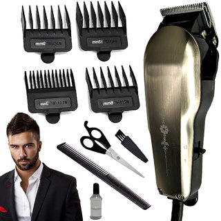 Powerful corded 9W hair clipper and trimmer with 4 length settings in one pack. A complete grooming kit which can trim your hair and beard from 0.8mm, 3mm, 6mm, 9mm & 12mm. Corded ultra trim grooming kit gives you the power of precision with complete versatility for all of your grooming needs. With this trimmer in hand, you don’t have to worry about looking shabby. It’s designed to take care of your beard and shape it effortlessly. The Ultra Trim Bread Trimmer comes with 4 guide comb (3mm, 6mm, 19mm, 12mm) to give you the flexibility of different lengths and precise trimming. Corde, can be used as much time you want. Simple plug and play. Washable and removable, the cutting head can be simply changed and cleaned up under the faucet. Ergonomic design fits in your hand, with a grip that gives you precision control. Self-sharpening technology for trimming blades. High-Speed Drive: Linear Motor Drive. Silver Pd Alloy Motor of High Moving Speed. Motor Speed: 2,500 RPM.Voltage: 110-240V Power consumption: 9W. Frequency: 50Hz. Materials: ABS Plastic + Stainless Steel. Washing Mode: Pull out shaving head and wash Directly through Water. Package Content : 1 pcs Beard Trimmer + 4 Adjustable Guide Comb (3mm, 6mm, 9mm, 12mm) + 1 pcs Cleaning Brush + 1 pcs Lubricating Oil + 1 Comb + 1Scissor. 1 year Replacement Warranty.