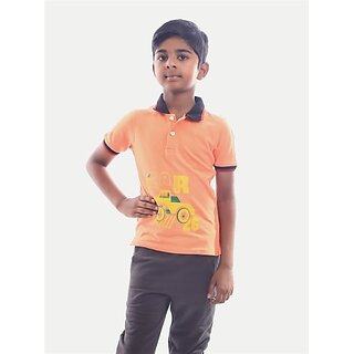 Radprix Boys Graphic Print Pure Cotton T Shirt (Orange, Pack Of 1)