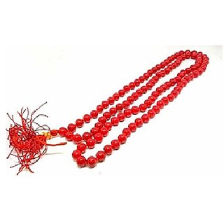 RATAN BAZAAR - CORAL(MOONGA)Mala With NAtural MOONGA Stone