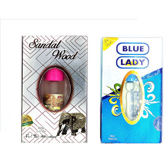 Raviour Lifestyle Blue LadyAttar and Sandal Wood Floral Roll on Attar Each 8ml Combo Pack