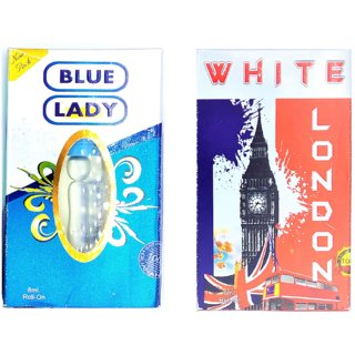 Raviour Lifestyle Blue LadyAttar and White London Floral Roll on Attar Each 8ml Combo Pack