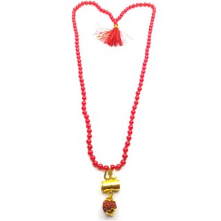 Raviour Lifestyle Lord Shiv Shakti 5 Mukhi Shiv Trishul Damru With Red Hakik Agate 108 beads Mala
