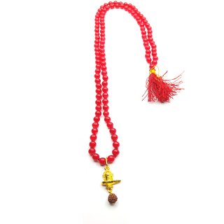 Raviour Lifestyle Lord Shiva Mahakal Shivling Rudraksha Pendant With Red Hakik Agate 108 beads Mala