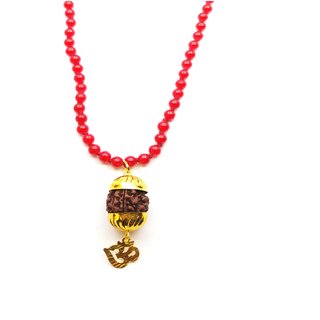 Raviour Lifestyle Mahadev Shiva Om Rudraksha Pendant With Red Hakik Agate 108 beads Mala