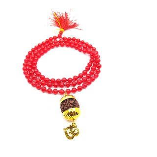 Raviour Lifestyle Mahadev Shiva Om Rudraksha Pendant With Red Hakik Agate 108 beads Mala
