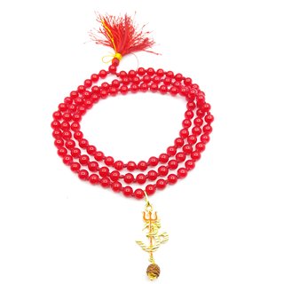 Raviour Lifestyle Om Shiv Mahakal Trishul With Rudraksha Pendant With Red Hakik Agate 108 beads Mala