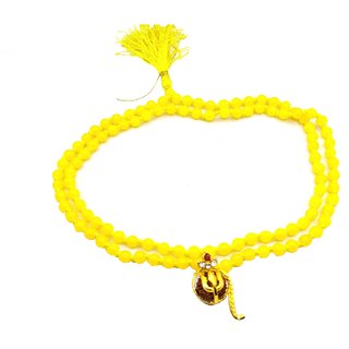 Ganesha, also spelled Ganesh, also called Ganapati, elephant-headed Hindu god of beginnings, who is traditionally worshipped before any major enterprise and is the patron of intellectuals, bankers, scribes, and authors. ... Like a rat and like an elephant, Ganesha is a remover of obstacles. He is extremely popular and is loved by all of all age groups. He is the Bringer of Joy, Prosperity, and Success and also the Destroyer of Evils and Obstacles.Being the affectionate, powerful, wise and loyal god.Many people wear Ganesha Rudraksha pendant to attract wisdom, knowledge, and kindness into their lives and self.Yellow Agate Mala Agate is a semi precious opaque gem. It is found in many colors. This stone can be used in place of the precious stones with equally effective results. For removing the bad planetary effects, a person should wear the Agate mala of the color which belongs to the planet.. Agate is a symbol of protection, courage and success. It attracts good fortune by eliminating bad luck. It has a calming effect during times of stress, giving a sense of strength and courage It has a calming and stabilizing effect on the body. It helps to encourage success and financial rewards This Yellow Agate Mala should be used to pacify the malefic effects of Planet Jupiter or to strengthen this planet in ones Horoscope.This Mala has 108 beads.. Japa Mala for Yoga and Mind Concentration For Brihaspati and Baglamukhi pooja..