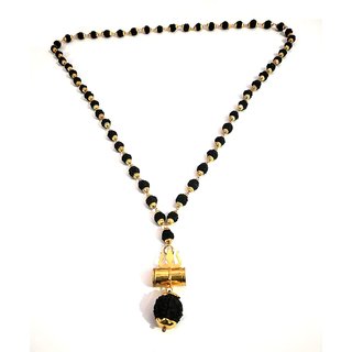 Raviour Lifestyle Rudraksha Black Beads Golden Cap Mala With goldan Coated Shiv Damaru Locket/Shiv shakti pendant