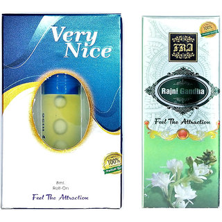 Raviour Lifestyle Very NiceAttar and Rajni Gandha Floral Roll on Attar Each 8ml Combo Pack