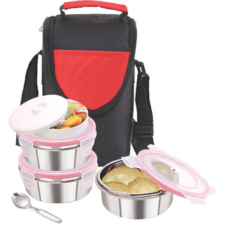 Know MoreRema lunch box Made from Stainless Steel and ideally designed for executives and office going adults.This lunch box contains 3 round container of same size and one plastic container. You can comfortably carry all these lunch boxes in a sleek and attractive lunch bag that comes along.Enjoy fresh food and healthy meal.