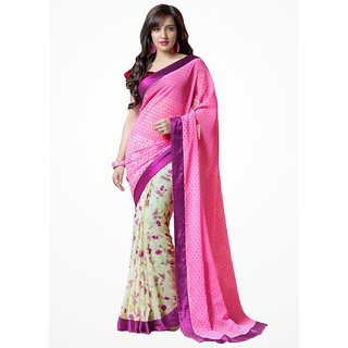 Know More| Riti Riwaz Chiffon Printed Pink Saree With Unstitched Blouse EA-Aw15SR-BDGT027 |