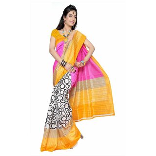 Know More| Riti Riwaz Very Soothing And Sober Multi-Coloured Bhagalpuri Saree With Geometric Print Aw15Bs-Sr008 |