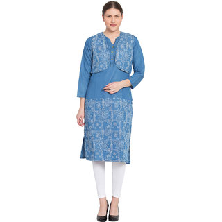 Know MoreRocca denim printed blue straight kurta has a mandarin collar, three-quarter sleeves, straight occasion casual wear & party wear. It doesn't matter whether you are off to a party, wedding, office or a simple outing with friends, the one attire that will come to your rescue is a great looking kurti or kurta. These costumes suit with any occasion as you can find some gorgeous designer kurtis for traditional gatherings, formal kurtas and kurtis for office, casual ones for daily use and more. Having a good number of these in your wardrobe is the safest foot put forward.