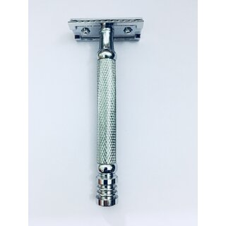 Medium weight metal safety razor with perfect Traditional Look Design ,Double Edge Razor , Handle best grip knurled design, Regular users & Begineers , Excellent Balance , Perect blade angle & Exposure for smooth silken shave , This razor come with Modern Style Packing.