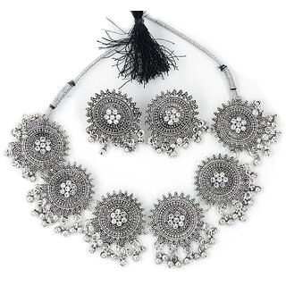 · Round Oxidize Choker With White Stone and Earring For Women which will complement any Indian and Western attire. Perfect gift: Ideal Valentine, Birthday, or Anniversary gift for your loved ones as women.