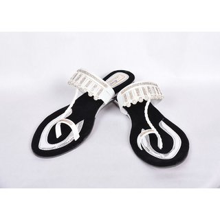 Know MoreTen presents you white and black coloured flat sandals providing a great comfort to your feet and adding a decent look to your personality. The upper portion is of suade leather with gold piping at the front providing a sober look and the base is very comfortable to wear and walk