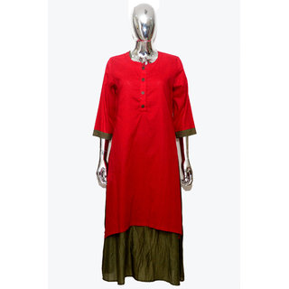 Know MoreBeautiful Ethnic Kurta From the Rumourrs . Symbol of high Quality clothing . Material : Made up of high Quality Cotton and special fibres that gives extra strenght to the material and keeps you comfortable and dry for all day long activities . Rumourss A-Line Red Cotton Plain Long Slim Fit Kurtas For Women Flaunt Your style with this beautifully designed Kurta everytime you wear it be it for any kind of ocassion . Wash Care : Normal wash in Cold water . Wash Separately . Do not Twist . Do not Tumble . Dry in Shade .