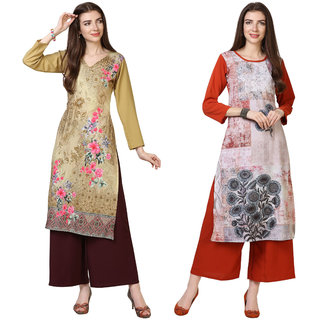 Saadhvi Beige and Red Crepe Floral Print Pack of 2 Kurtas