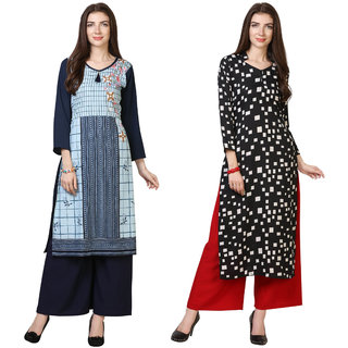 Saadhvi Blue and Black Crepe Striped Pack of 2 Kurtas