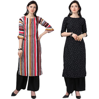 Saadhvi Multicolor and Black Crepe Striped Pack of 2 Kurtas