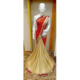Fabric ghatchola checks + cherry chinnon with beautiful bandhej + mirror work border + hand work butta in pleates portion.