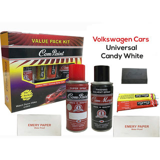 Know MoreCom-Paint scratch repair kit removes scratches safely, quickly and easily, and it gives a fresh new look to your vehicle. It works on any car. The package contains 1 Can Of Com-paint Touchup Spray Paint (120gms) 1 Can Of Com-merge, Finishing Solvent Spray (120gms) 1 Tube Of Com-cut (50gms) 1 Tube Of Com-fill (50gms) 1 Com-paint Rubber Applicator 2 Com-paint Emery Pads (Ep - 400) & (Ep - 2500) Grit. Disclaimer: Pictures shown are for illustration purpose only. Actual product may vary due to product enhancement