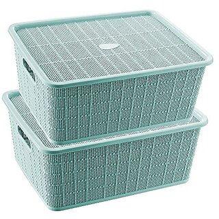 SELVEL Giving shape to life Multipurpose Storage Baskets Large with Lid f Set of 2 (Small, Green)
