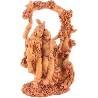 Know MoreResin Radha Krishna siting on jhula beautifull carved wood finish