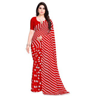 Shopkio Women's Pure Georgette Strips Printed Red Colour Saree with Blouse Piece