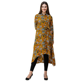 Know MoreThis Product Suitable For Women Height 5'4 inch. Illustrated by intricate floral print and a joyful self-tie belt along the side to put a smile on your face. This mustard top is also complimented by asymmetric hem and concealed placket for a clean finish. Wear it with seasons lace up sandals and you are ready to go!