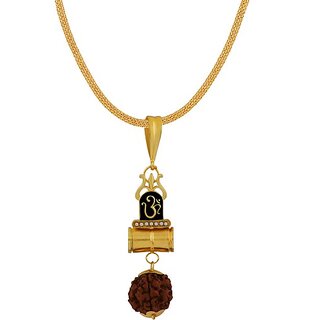 Silver Shine Gold Plated Designer Look Necklace Om Pendant Chain Jewellery For Man And Boy Gold-plated Alloy