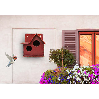 Sparrow Daughter Bird house Nest Box for Sparrow, Finches, Garden Birds Breeding House For sparrow and other bird. This birdhouse offers your bird friends a cozy home. Product Details:- This unique design birdhouse is the perfect addition to any home or garden of your choice. Do not change the place frequently and install it within climbers or shrubbery on a wall or on tree. Specially Design for All types of Medium size Birds Breeding/Nesting. A traditional and eco friendly bird box that can be placed in any garden your window grill, balcony or backyard installing it is as easy. Make sure that your nesting box is installed well before the breeding season begins. Don't be discouraged if birds don't begin nesting in it immediately sometimes it takes time for birds to discover the nest box. Attention is make sure you can open the side door for cleaning each season. remove or omit perches on the birdhouse