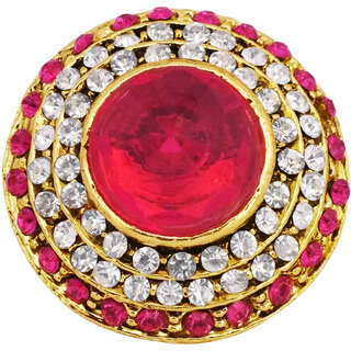 This ring beautifully decorated with twenty four Maroon CZ stones and fouty seven CZ stones, made with casting Golden color coated which gives a Traditional look to your style. 24Karats takes 3 months warranty of Ring color.