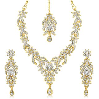 Know MoreThis Sukkhi Trendy Gold Plated Australian Diamond Stone Studded Necklace Set is made of zinc casting. Women love jewellery; specially Australian Diamond jewellery adore a women. They wear it on different occasion. They have special importance on ring ceremony, wedding and festive time. They can also wear it on regular basis . Make your moment memorable with this range. This Australian Diamond jewellery features a unique one of a kind traditional emblish with antic finish. This Exquisite and Elegant Necklace adds a Beautiful Touch to Your Ensembles. Pair these Intricate Necklace Set with any Outfit to Craft a Precious Look in no time at all. Jewellery adds Lavishing look to any clothing. Any fabulous outfit is incomplete without matching jewellery. A woman is completely dressed with wearing matching jewellery. So it can be rightfully said that in order to dress completely, a lady needs fashion jewellery. Along with jewellery, demand for fashion accessories is also at boom. Women put on complementing jewellery, accessories, clutches and sandals in order to carry a perfect party look. Occasion might be any, getting ready in a sophisticated manner is women’s thing that they enjoy the most. An exclusive assortment of fashion jewellery & accessories brought to you by Shopclues. Select your kind of jewelley and get decked up for upcoming festival or party. Our collection can be your best partner for marriage, anniversary, festive occasions and other such functions. So, wear any stunning piece from our collection and become a style icon at next get-together party. In our exhaustive assortment of fashion jewellery, you can get your hands on jewellery set, Earrings, pendants, rings, necklaces, bangles, bracelets, studs, jhumkis and many more.