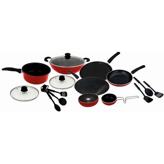 Package Contents: (1Pc Kadhai ,1Pc Kadhai Glass Lid,1Pc Fry Pan,1Pc Fry Pan Glass Lid,1Pc Sauce Pan,1Pc Sauce Pan Glass Lid,1Pc Tadka Pan,1Pc Multi Pan,1Pc Dosa Tawa,1Pc Chapati Tawa,6Pc Spatula)