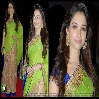 Know MoreTamanna Bhatia chiffon net parrot green saree with velvet blouse fab