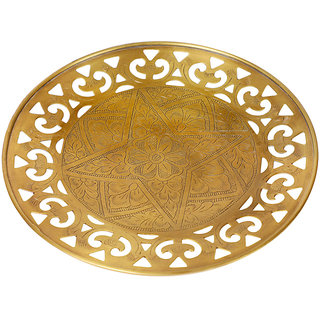Know More| A single brass sheet metal candle base whose surface is hand etched with unnique cut outs at the border done by the hands. |