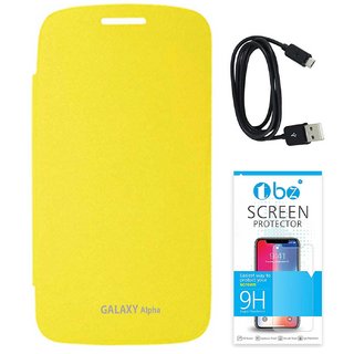 Know MoreThis is smartest way to protect and carry your smartphone with this new Flip Cover Case exclusively designed for the Samsung Galaxy Alpha. The case has a hard back cover which protects the Samsung Galaxy Alpha from scratches and helps to keep the screen clean and clear. Easily snap on the case and you are ready to go. The front flap protects the screen from scratches and dirt. Flip cover provides a set to complete front and backside scratch protection. The case provides an easy to apply protection without adding a lot of bulk to your phone. Package includes Tempered Glass Screen guards protect your screen against scratches and dirt while leaving no finger prints behind. Package includes the Micro USB Data Cable can be used to not just charge your device but also transfer data from a PC/Laptop. Samsung Galaxy Alpha Flip Case: The Flip Protector Cover Case is designed exclusively for Samsung Galaxy Alpha Front flap with smooth microfiber lining inside prevents the phone from getting scratched and protects it against dirt and bumps without adding a lot of bulk Easy to apply, durable construction and premium quality This Case is the perfect combination of style and durability for your Smart Phone.