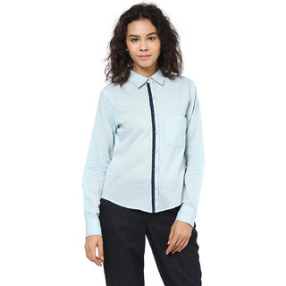 Accentuate your corporate vogue and give it a chic highlight with this blue shirt. Detailed with contrast taping along the placket for a distinct appeal, this shirt is best paired with dark-tone trousers and belly shoes.