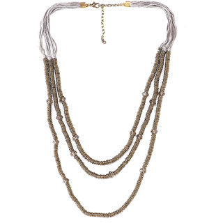 Know MoreA multitude of beaded strands winds up in nifty layers in this chic handcrafted necklace, with metallic beads shimmering among earth tone olive, copper and brown beads. Such a piece is ideal for enhancing your fall styling.
