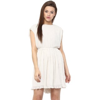 Sport a new office look by wearing this off-white short dress. Featuring pleats all over and an elasticated waistband, this dress will lend you a smart look. Made from georgette, this comfortable dress can be best teamed with pumps in any of the bright colours, and a matching handbag.