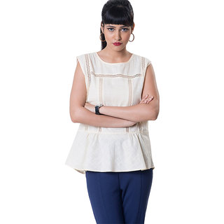 Know MoreElaborate, exquisitely crafted lace contrasts with this soft cotton shirt's easygoing style, complemented with a peplum at the bottom for a chic appeal.