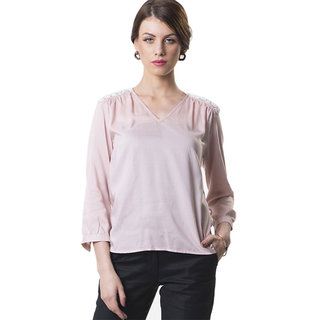 Know MoreFor your relaxed days at work, you deserve the blissful caress of this laid-back featherlite top in luxuriously soft stretch Modal. Designed with a deep V neckline, three-quarter sleeves, side slits and a contrasting net back with flower weaves, it's comfy enough to sleep in too.
